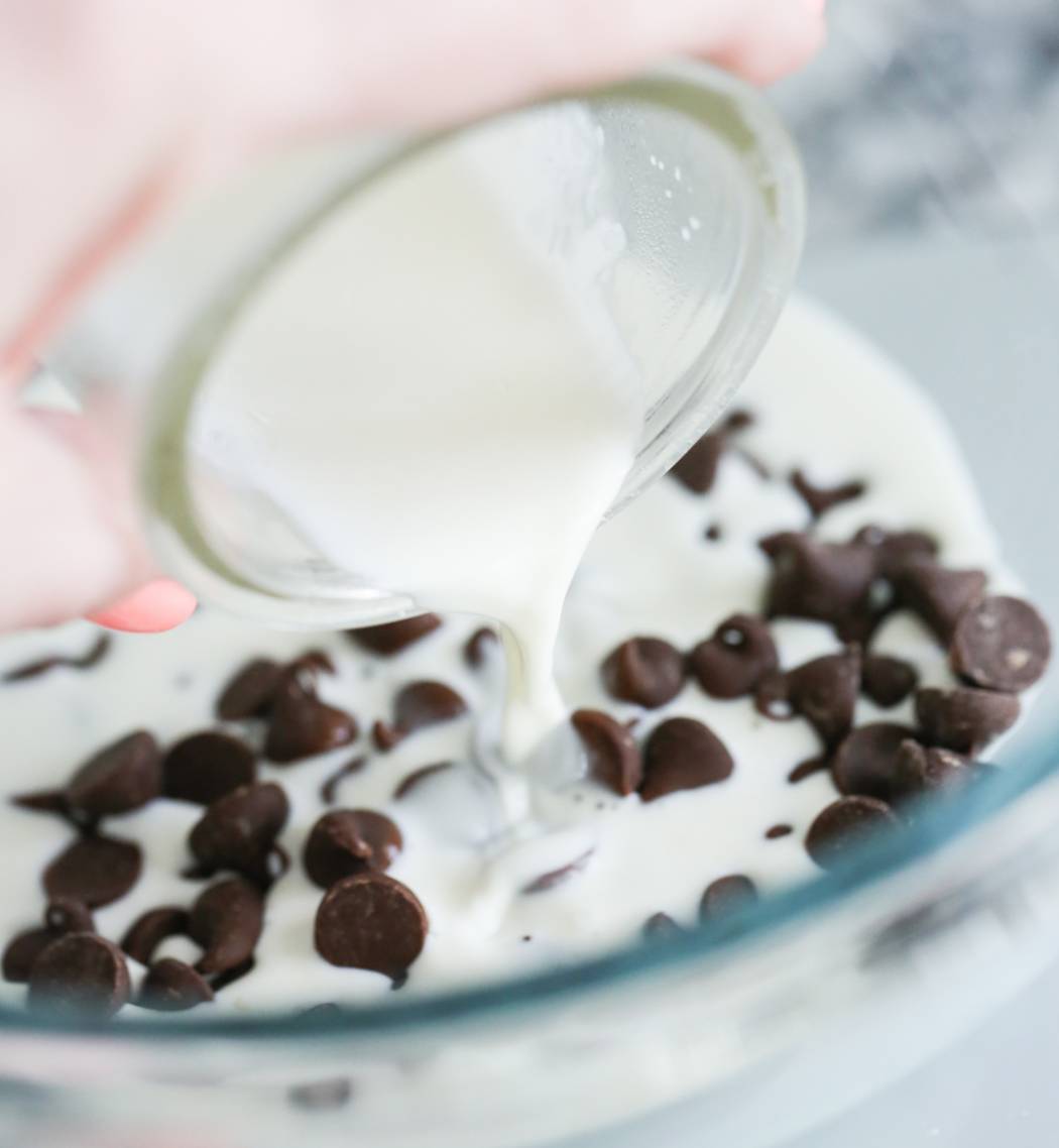 - You’ll also need to make a quick recipe of chocolate ganache from chocolate and heavy cream.