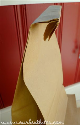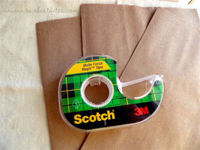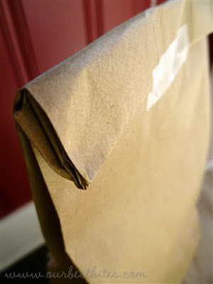 You also need plain brown lunch bags. And tape. I’m pretty sure you don’t even have to tape the bags, although I tried it out several ways and had the best success with the taped bag. Again, I didn’t even venture into staple territory.