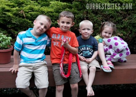 The two blondies (yes, including the crazy face) are mine and the two dark haired kiddos are Kate’s. These four kids became instant pals, which was so fun for us to see.