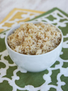 I know, I know…by the title you’re expecting the most exciting blog post, EVER. Right? Stick with me. To pump up the excitement factor, I’m giving away something super cute, too. You’ll want one. But let’s talk brown rice for a minute, shall we? Brown rice is a whole grain. It’s a plain grain of rice with only the outer husk removed. To produce normal, white rice, the next 2 layers (the bran and the germ) are removed, leaving just the starchy white center. While brown and white rice have similar amounts of calories and carbohydrates, brown rice has considerably more nutrients, including fiber, magnesium, healthy fatty acids, and much more. It’s a little chewier than white rice and has a mild, nutty, flavor. It’s definitely a great way to add healthy grains to your diet.