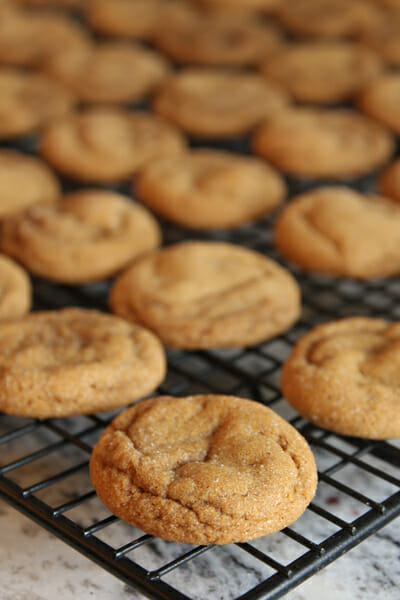 If you want to give the flavor combination a test drive before committing to the work involved in baking all those cookies, go to the store and buy a box of gingersnap cookies and a thing of lemon icing. Sandwich some of the cookies and icing together, let them sit overnight before eating. Sure, you don’t HAVE to wait, but the cookies absorb moisture from the icing and get soft and delicious if you do wait. Enjoy. 😉