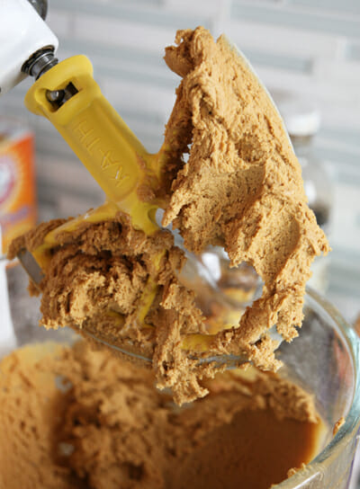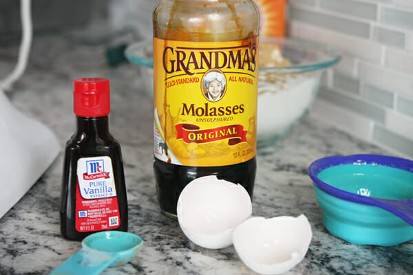 - Once those are light and fluffy, add in some vanilla, and egg, and some molasses. Then add those dry ingredients until you have a nice soft dough.