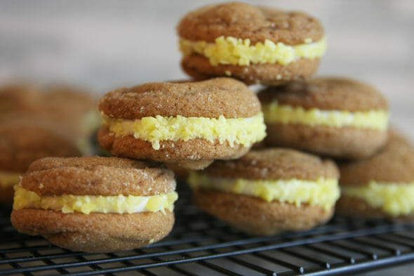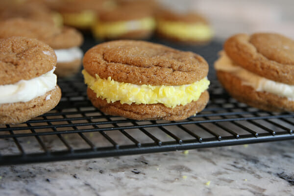 Soft Gingerbread Sandwich Cookies with Lemon Creme Filling