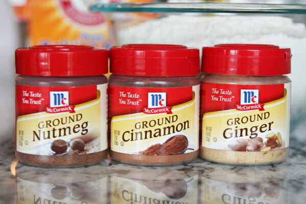 - Start by mixing up some spices with your flour: ginger, cinnamon, and nutmeg. Set that aside and cream some butter and brown sugar together.