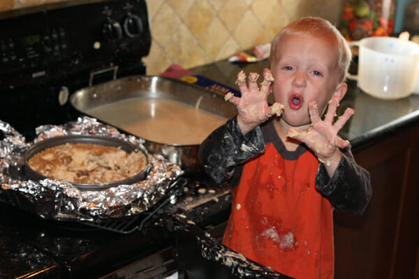 Thank you for this post…it speaks volumes to me. What amazing mothers and women you both are!! But please do tell how in the world you got those eggs out of the vacuum? ? Loved the flour picture too – all little boys should get a chance to play like that once in awhile!