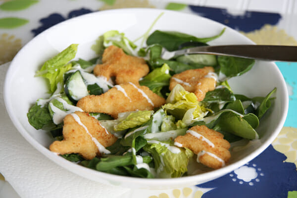And because I also value the nutritional content of our family meals, I sometimes put the dino nuggets on lettuce and call it a Crispy Chicken Salad.