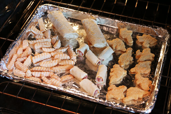 Here’s one of our favorites: a little something I like to call “The 400 Special.” It’s a great demonstration of the value I place on education and learning in the home. I send my three young boys to rummage through the freezer and assert their exceptional knowledge of both letters and numbers as they search for anything and everything they can find that says, “bake at 400” on the package.