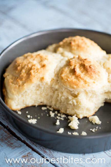 So here at Our Best Bites, we have over 900 recipes. Wow, right? Kind of crazy. What’s crazier? None of them are recipes for straight-up biscuits. I’m not sure why–part of it, at least for me, is that a good biscuit is hard to beat, but finding a good biscuit is surprisingly hard, especially considering how simple the recipe is. Since Alton Brown is kind of the king of food science and biscuits are basically a science experiment that has the potential to result in delicious weight gain, I tried his, thinking they would SURELY be amazing (especially since they had rave reviews), and they were not. It was one of my more epic kitchen fails. No one in my family would touch them. I texted Sara, telling her if she was looking for a biscuit recipe, this one was NOT it and she told me she had the same experience.
