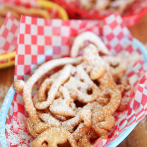 Okay, so. The other day after discussing something completely life-changing I ate at our state fair on Instagram, and then declaring my love for fair food, people started requesting a funnel cake recipe. I quickly hopped on the blog to grab our recipe to send them and couldn’t find it anywhere. I thought I was going crazy. I texted Kate to see if she had maybe removed the funnel cake recipe I remembered her once posting. That’s when I found out the hard truth. Not only had Kate never shared a funnel cake recipe, ever (I imagined that apparently?!) She’d also NEVER EATEN A FUNNEL CAKE. Like, what? I don’t understand. I’m confused. And I’m sad. All at the same time. It made me think about how many other people there are in the world that haven’t had the experience of biting into those warm, fluffy, fried chunks of sugar-coated dough and this is something that needs to be rectified immediately.