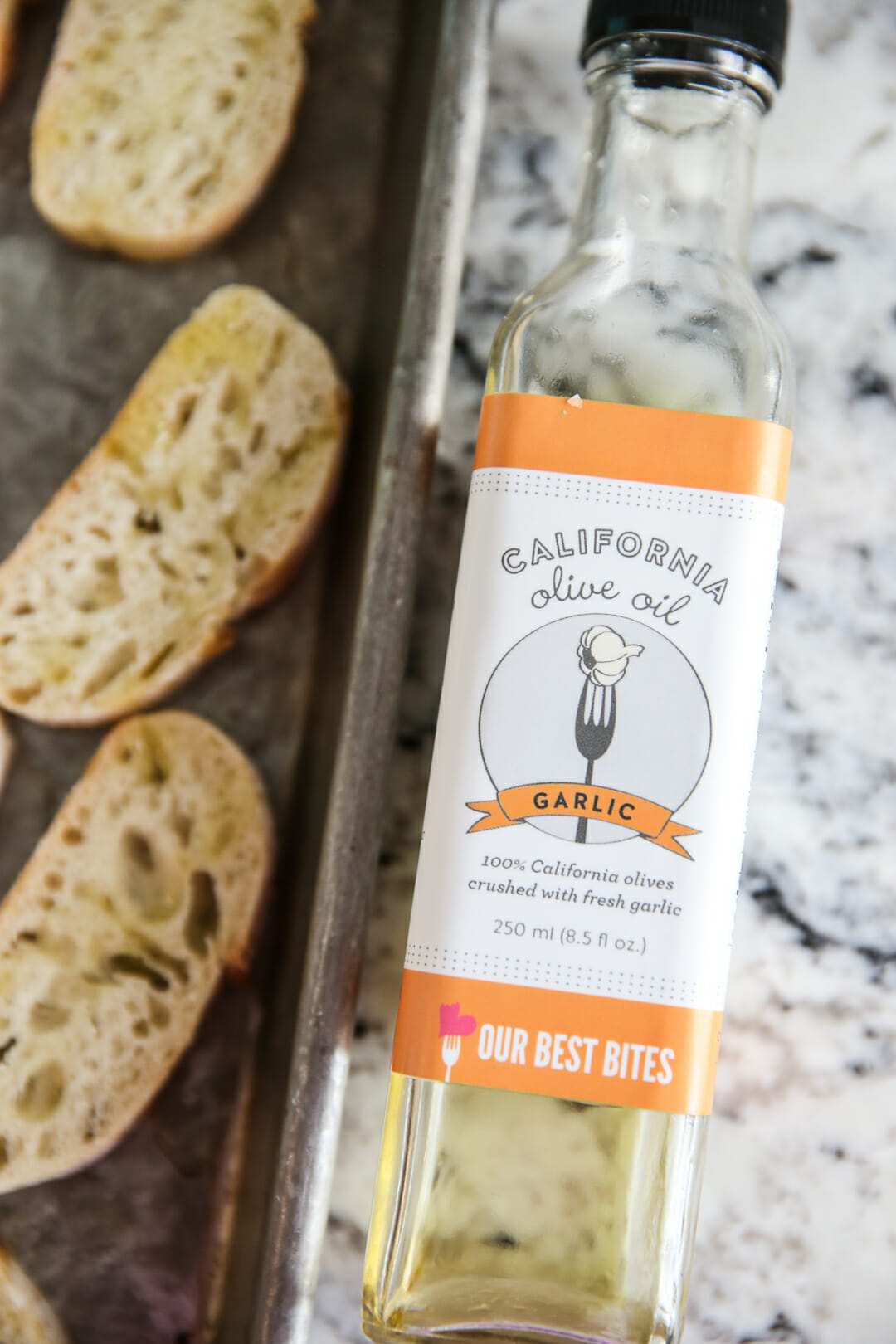 I drizzled my bread with garlic olive oil and toasted them in the oven for just a few minutes.