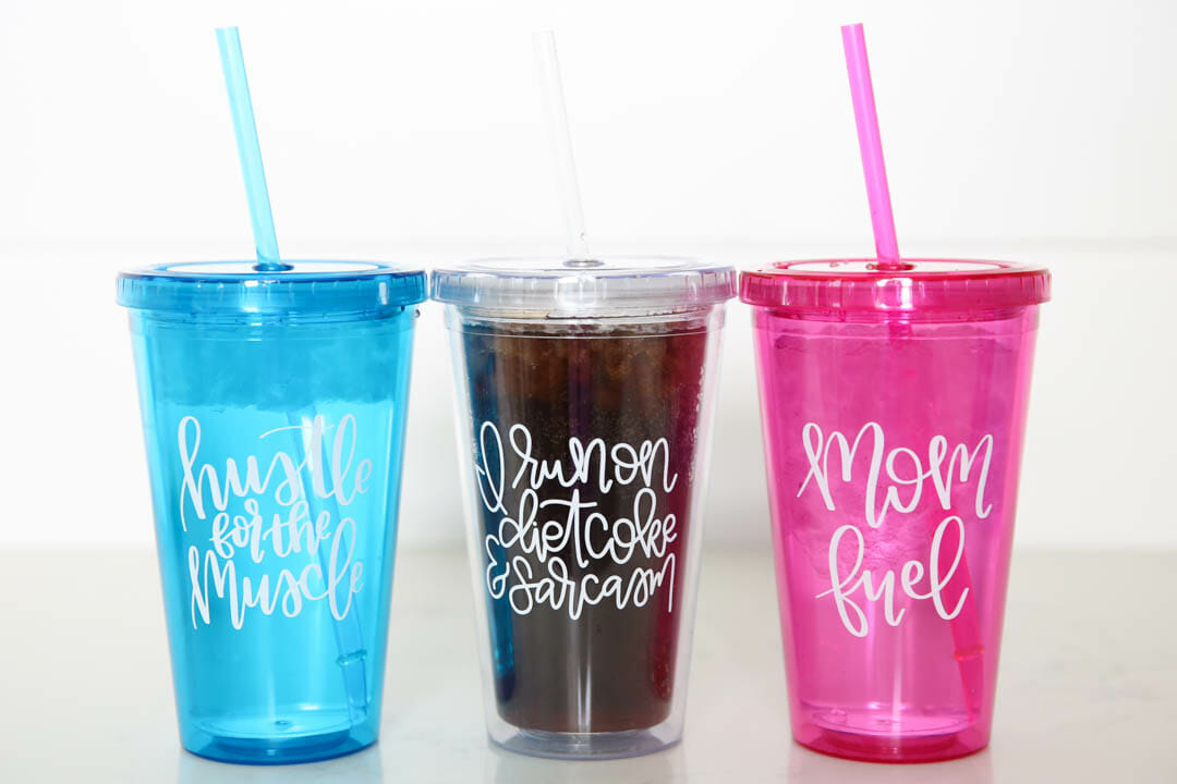 First of all- you guys have been anticipating these cute cups and they’re finally here! Our hand-lettered tumblers are double-walled to keep cold stuff cold and each design was created by yours truly.
