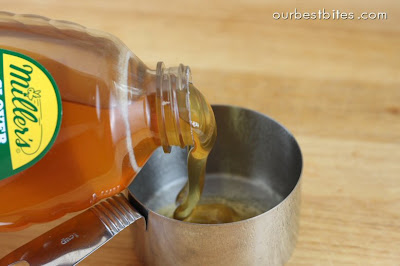 Do you all remember our tip about measuring sticky stuff? Spray your measuring cup with non-stick spray first.