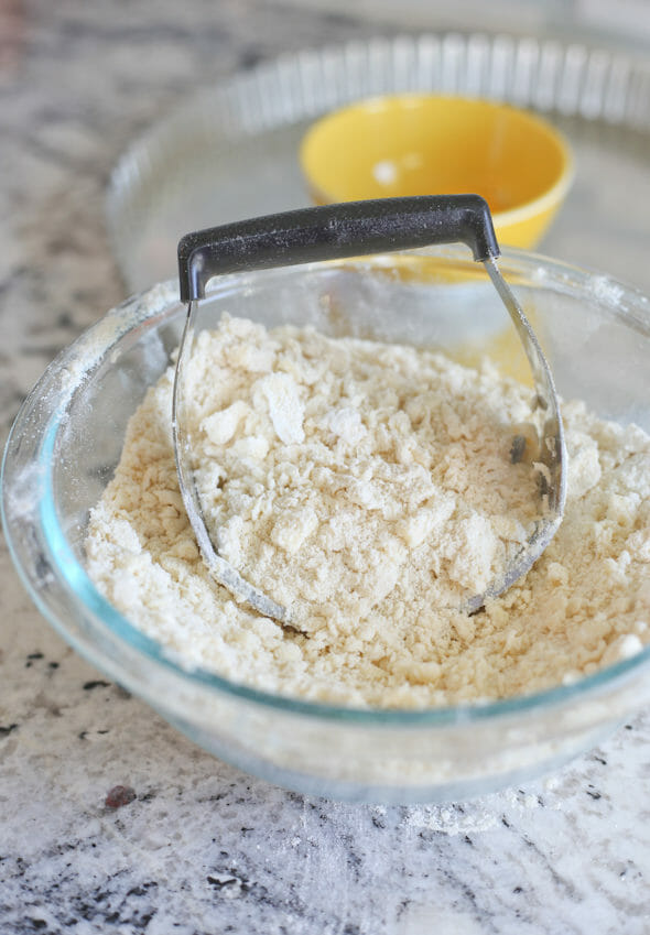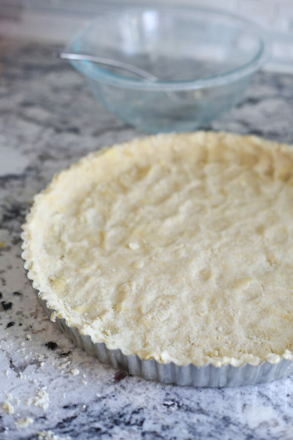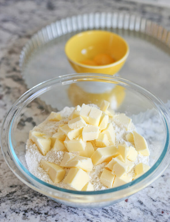 - The pastry dough comes together in minutes. You just need real butter (no exceptions), flour, and a couple of egg yolks. You can use a food processor, or a pastry cutter to cut them together until crumbs form. Make sure there are pea-sized chunks of butter in there to help you get a flaky crust.