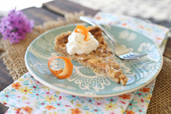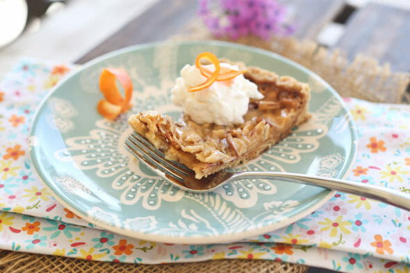 I wish you could all have a bite of this so you could understand the flavor and texture. The crust is buttery and flaky and melts in your mouth. The top of the tart is slightly chewy, yet soft in the middle and the flavor of the caramelized sugar and cream with hints of almond and orange is just out of this world. I actually don’t think it necessarily needs whipped cream, but it looks pretty and well, everything seems to be better with a little whip on top.