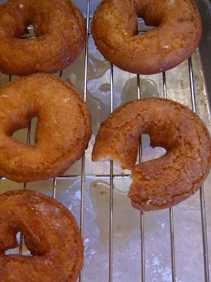 Anyway, during this window of generous doughnut sampling, I discovered one thing: I like yeast doughnuts, but I love cake doughnuts. I love everything about them–the delicately dense, crumbly texture, the variety of flavors–blueberry! Devil’s food! Buttermilk! Spice!–I mean, really, what’s not to like? I also discovered that they’re called cake doughnuts, not because they’re baked like cake but rather that they use baking powder as the leavening agent rather than yeast. Next time someone accuses you of wasting time and not learning anything on the internet, you shoot THAT little factoid their way!