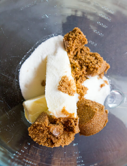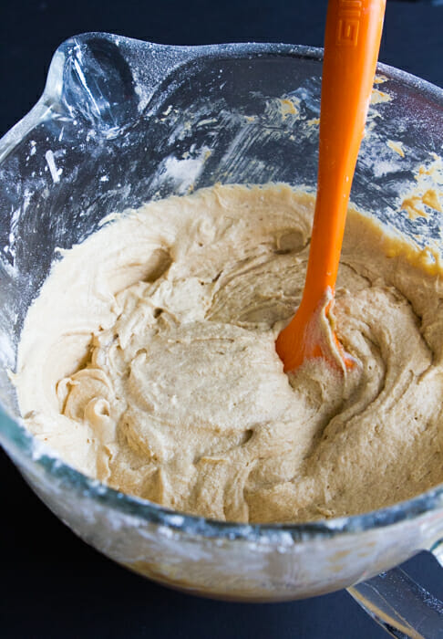 • Whisk the flour, baking powder, ¾ teaspoon pumpkin pie spice, and salt together in a medium bowl. In a large bowl or the bowl of a stand mixer fitted with the paddle attachment, beat the butter, brown sugar, and granulated sugar on medium high speed for about 3 minutes or until light and fluffy (scrape the bowl as necessary).