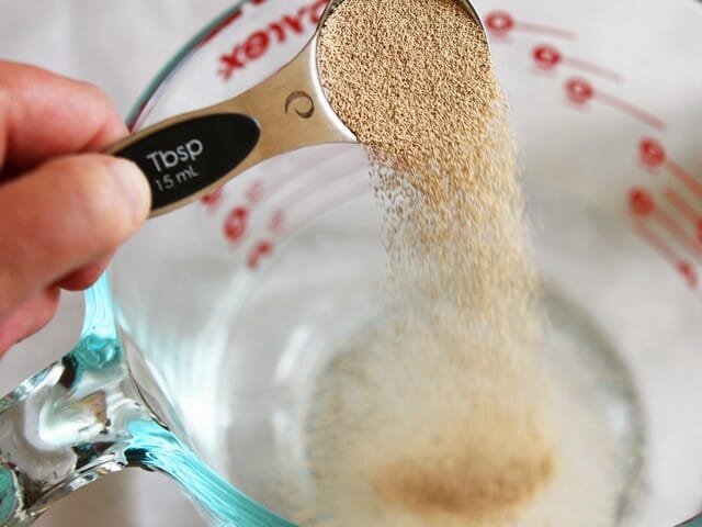 and 2 tablespoons of yeast to 2 cups of warm water.