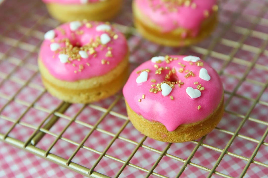 Let’s be honest. Baked doughnuts aren’t doughnuts. They’re small muffin-ish cakes in the shape of doughnuts. That being said, it’s a super fun way to make something ordinary, extra special. They’re as easy as muffins to whip up, but 400 times more adorable and fun to eat. You can get creative with glazes and toppings, and come up with endless flavor combinations.
