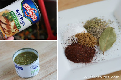 1. And then add some beef broth, green chilies, and your spices.