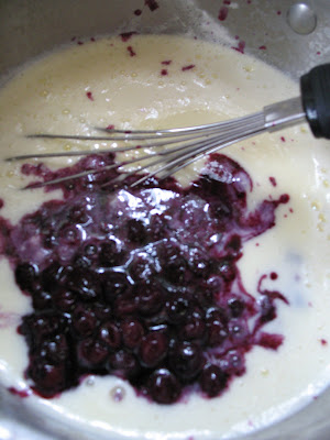 • In a small saucepan, combine blueberries, powdered sugar, and water. Bring to a boil and then reduce to a simmer. Simmer for 10 minutes and then remove from heat and allow to cool completely.