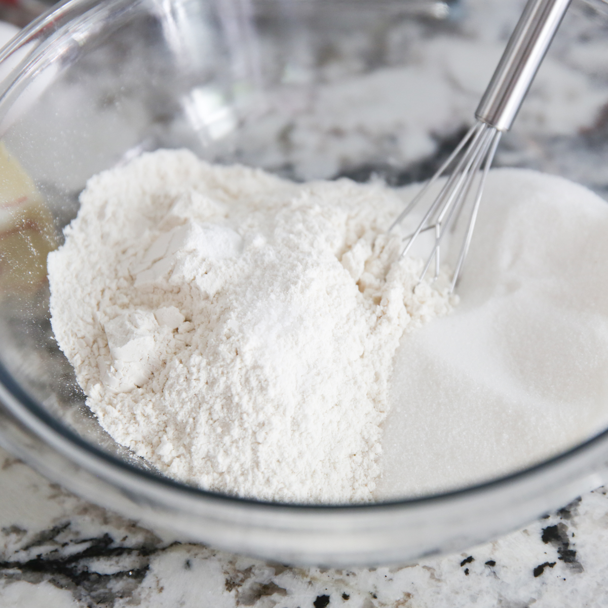 - To prepare crust and topping, combine sugar, flour, salt, and baking powder in a medium sized mixing bowl and stir to combine.
