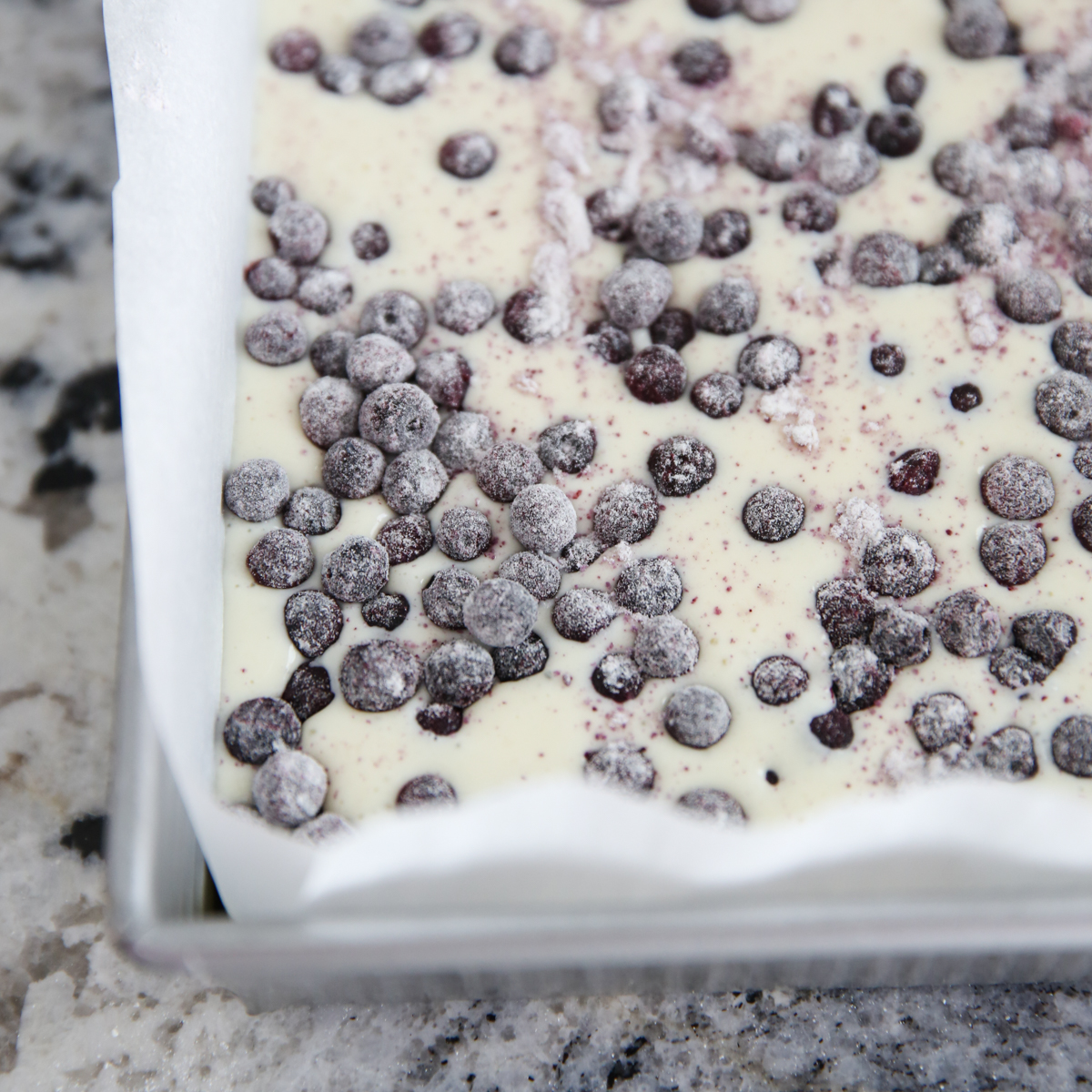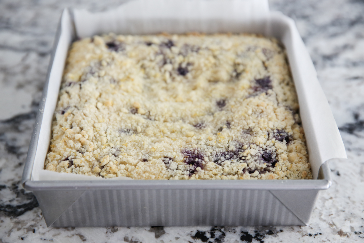 - To prepare filling, use a food processor to blend the ricotta with a little bit of sugar until smooth and creamy. That gets mixed up with some flour, vanilla, eggs, plus the reserved egg white from the first step, and lemon juice, and poured over the prepared crust. The filling gets topped with some frozen blueberries (tossed in a little flour) and reserved crumb mixture. After baking until lightly golden, but still a little jiggly, the bars need to cool and then spend at least 8 hours in the refrigerator before being cut into and served.