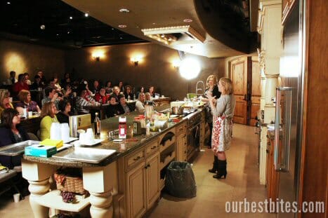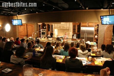 One of the best moments of the whole day? Seriously, I still can’t believe this happened. I joke so much about my kitchen-klutz moments but never thought one would actually happen while cooking in front of people. Oh ya, never assume such things. Let me just say that the knives at Orson Gygi are sharp. Very sharp. And apparently I have trouble multi-tasking, you know like cutting and speaking.