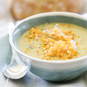 My kids who whine about broccoli in any other form will inhale it in this broccoli cheese soup, so I’m calling it a parenting win. Broccoli Cheddar soup can be insanely rich and caloric and I feel like this recipe is the perfect happy medium. It has just enough richness to make it creamy and hearty, without being overly heavy, and it comes together in under 30 minutes! This is a family favorite at our house and I think you’ll love it, too!