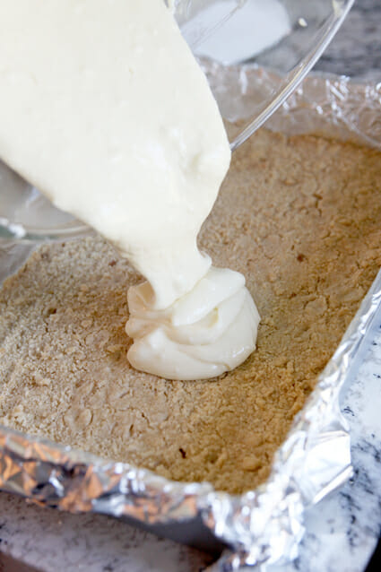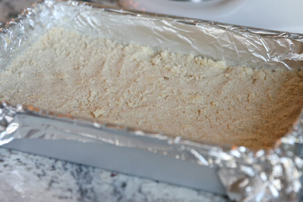 - You’ll start with a layer of buttery crust with just three ingredients: butter, sugar, and flour. Press it down into a pan and bake it off for a few minutes to get browned and toasted.