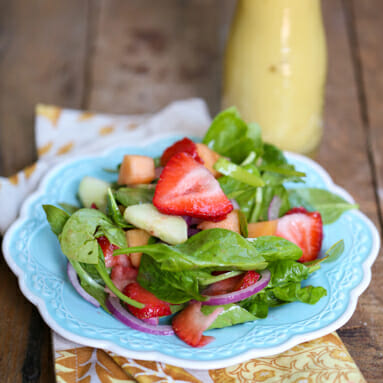 Strawberry, Cucumber, and Melon Salad with Dijon Vinaigrette