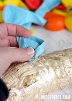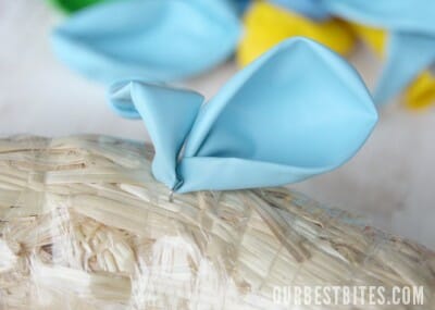Take a floral pin and place a balloon right in the middle of the opening