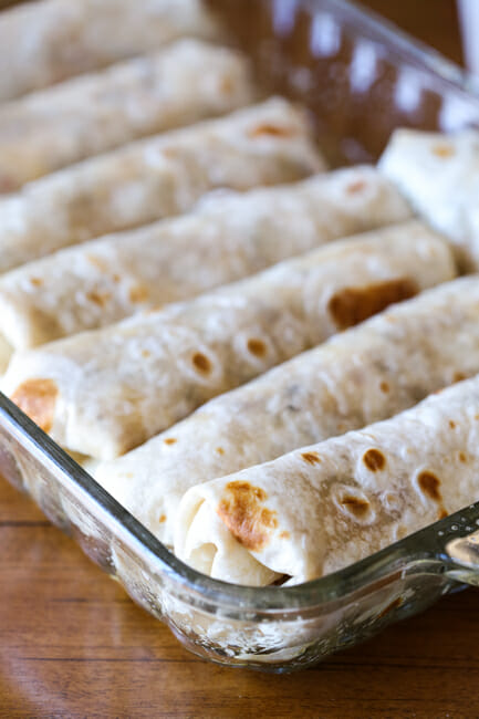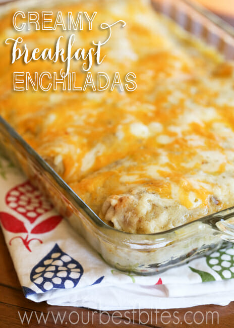 At our house, we are big on breakfast for dinner. Breakfast for actual breakfast is a different story, but I’ll throw all my waffle-making, egg-scrambling, burrito-making resources into dinner, like in these Cheesy Breakfast Enchiladas.