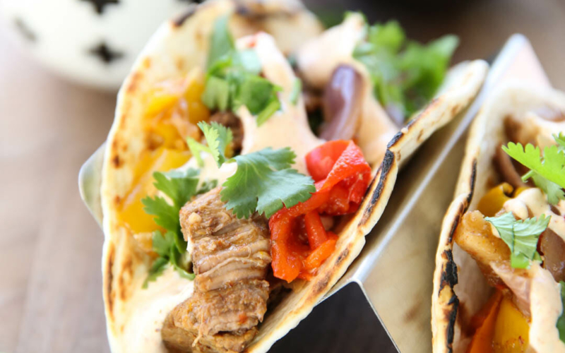 Slowcooker Steak Fajitas with Chili-Lime Cream