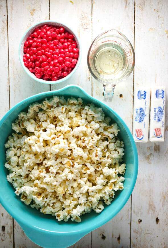 - popped popcorn – you’ll need 16 cups, so that’s about 2 bags of microwave popcorn
