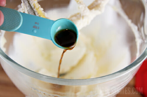 Cream it together until it’s nice and fluffy. Properly creamed butter and sugar actually does make a difference in your cookies! It should beat fast for a full 1-2 minutes at least.