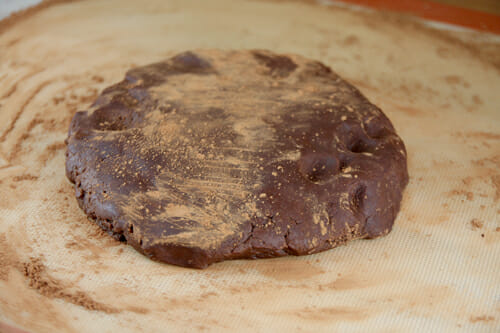Pat our your dough and give it a sprinkle of flour/cocoa powder on both sides