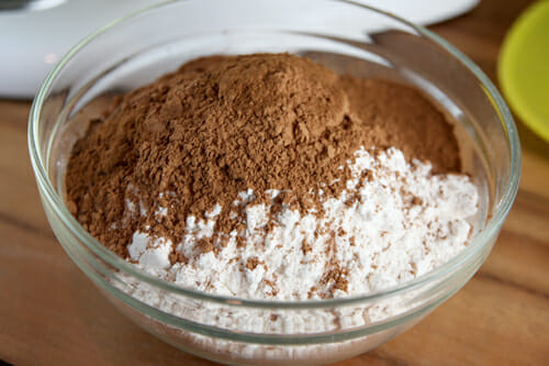 Just whisk some cocoa powder and flour together. The original recipe also calls for 1 teaspoon of espresso powder. I omitted that, but you can certainly add it if you have some.
