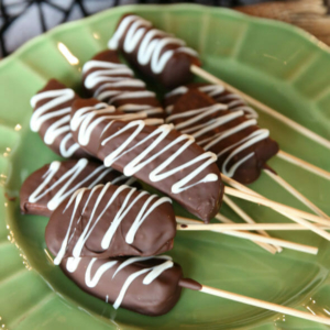 Dunk each slice in melted chocolate (super easy because they’re on sticks)