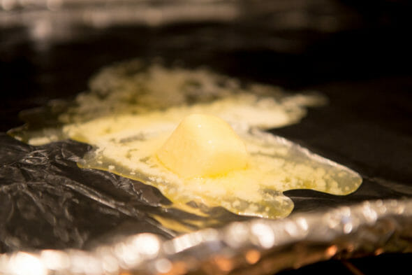 - Place a separate foil-lined baking sheet in the oven with a little butter on it. After the butter melts, spread it around with a pastry brush.