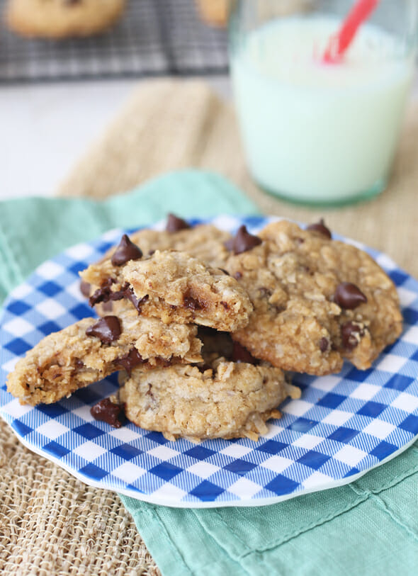 - old fashioned oats – you can make this recipe with all steel cut oats, but I found I especially liked it with a combination of steel cut and old fashioned. It’s just more great texture and the old fashioned oats help give the cookies a little shape. But I’ve made them several times both ways, and they’re super delicious with all steel cut as well. My family was split on which version they like better.