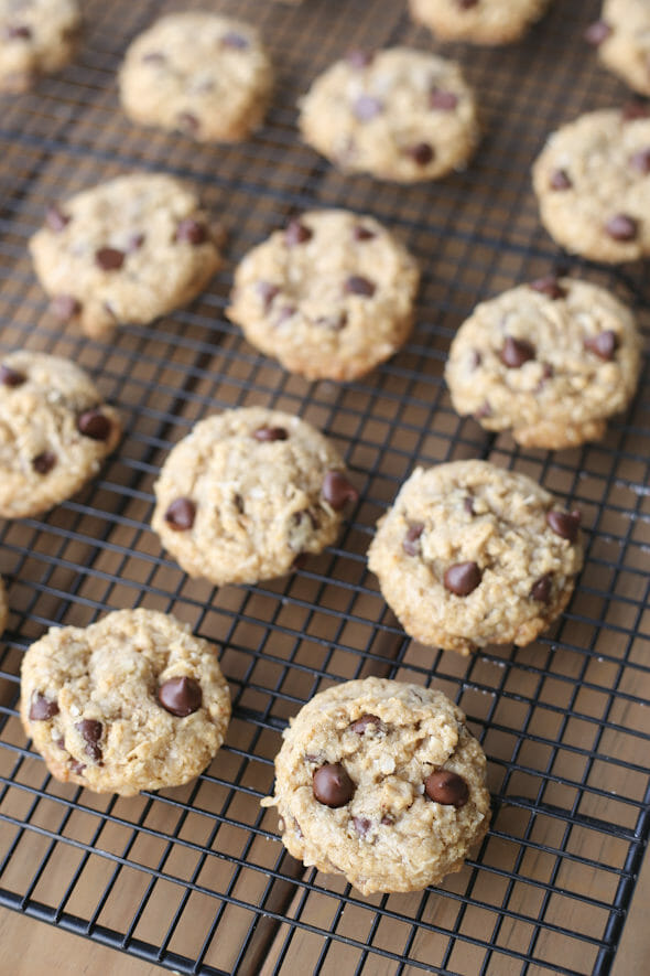 These cookies combine tender coconut-oil based dough with a satisfying mix of steel-cut and old-fashioned oats, shredded coconut, and melty chocolate chips. They have soft, chewy centers and slightly crisp edges. Perfect for some weekend baking! Easy to scoop, bake, and even easier to enjoy!