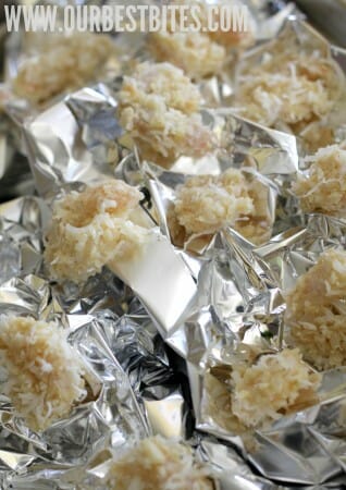 I was wondering the same thing about the crumpled foil. As much as I cook, I have never thought of that. Thanks for the tip, I think you just saved me from burning my finger tips everytime I have to flip halfway throught the cooking process and some f-balls ;)(I actually say f-balls without the f, picked it up somewhere, but don’t remember when) slipping out of my mouth too!