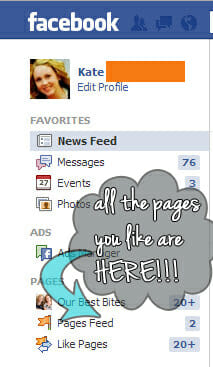 Go to your Facebook page and look over at the left-hand side, right underneath your profile picture. Why, yes I do have 76 unread Facebook messages. Sent me a Facebook message and wondered why I never wrote you back? There’s your answer. You’ll see a link that says “Pages Feed.”