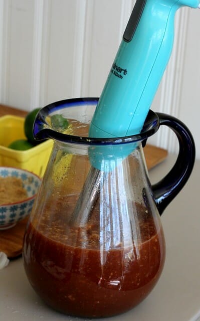 Combine all the ingredients except for the liquid smoke and the ribs in the jar of your blender or, if you have an immersion blender, in a pitcher. Blend until the ingredients are combined.