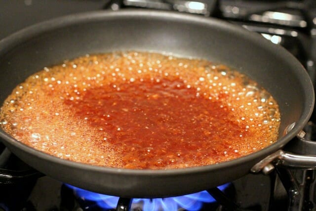Place the reserved liquid in a small saucepan or skillet. Cook over medium-high heat, stirring frequently, for 5-7 minutes or until the liquid is starting to reduce and thicken slightly (if you’re starting with 1 cup, you want to reduce it by about 1/4 cup).