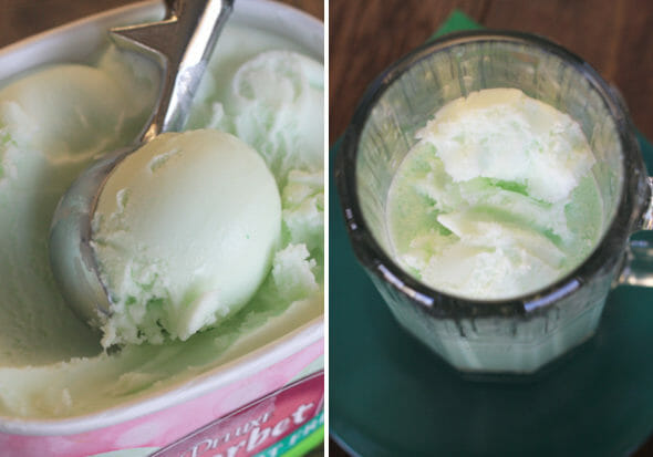 I haven’t tried this in a punch bowl, but you could certainly try it out! I would assemble it immediately before serving. In a punch bowl, I imagine it would work best to add your lemon-lime soda first, then your blender ingredients, and top off with scoops of sherbet!