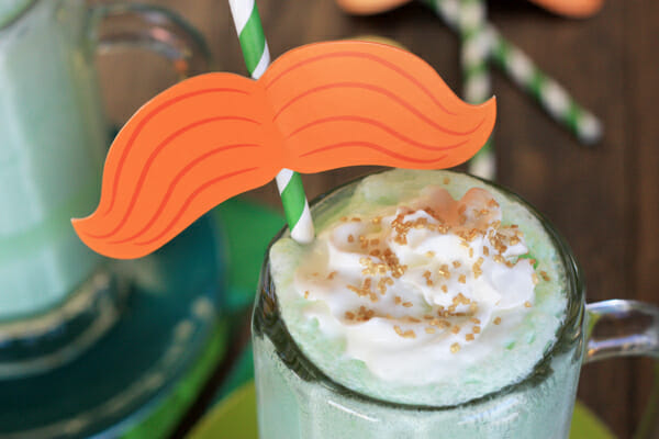 I don’t get the mustache thing either! Glad I’m not the only one! We usually do shakes with mint chocolate chip ice cream for St. Patrick’s Day. I like your float idea! Different from all the chocolate/mint combos!