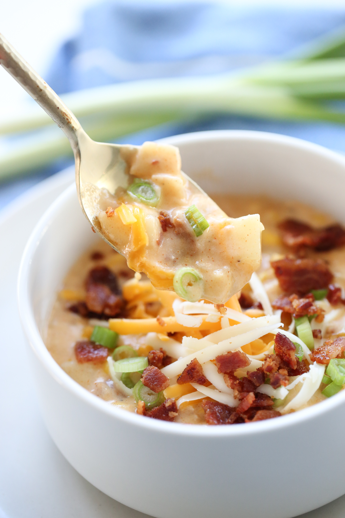 - Ladle into bowls and sprinkle with extra bacon and cheese – I also love a little green onion!