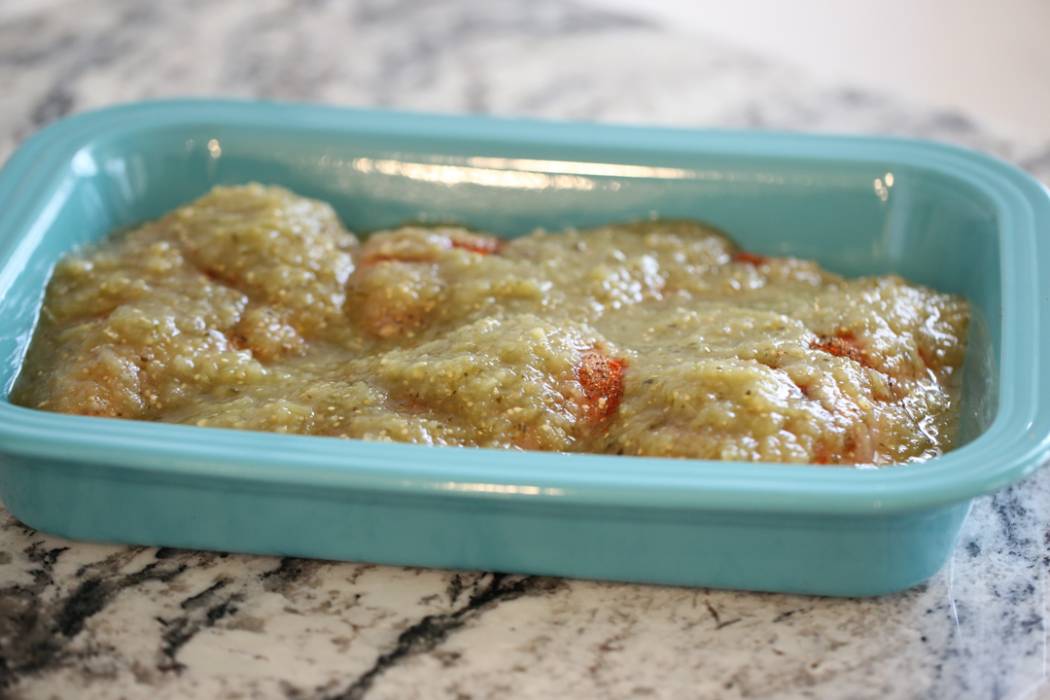 - This really couldn’t be easier. You’ll sprinkle a handful of spices over some boneless, skinless chicken breasts in a 9×13 pan. If you don’t have all of these, don’t sweat it. It’s totally fine to even eyeball! Then pour the jar of green salsa right over everything. That’s it! Pop it in the oven.
