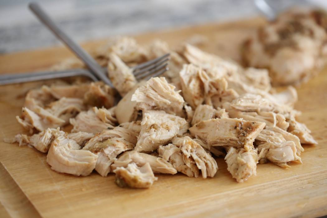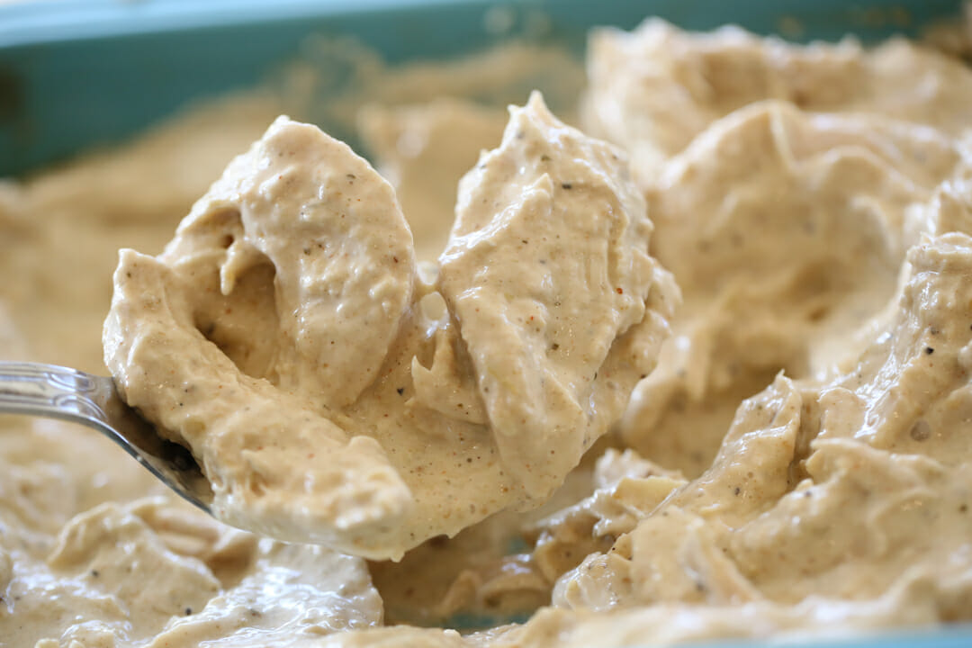 - After the dish comes out of the oven, remove the chicken pieces to a cutting board and shred. You’ll also combine a block of cream cheese to the remaining sauce in the baking dish. I’ve outlined a couple different ways to do this is the printable recipe.